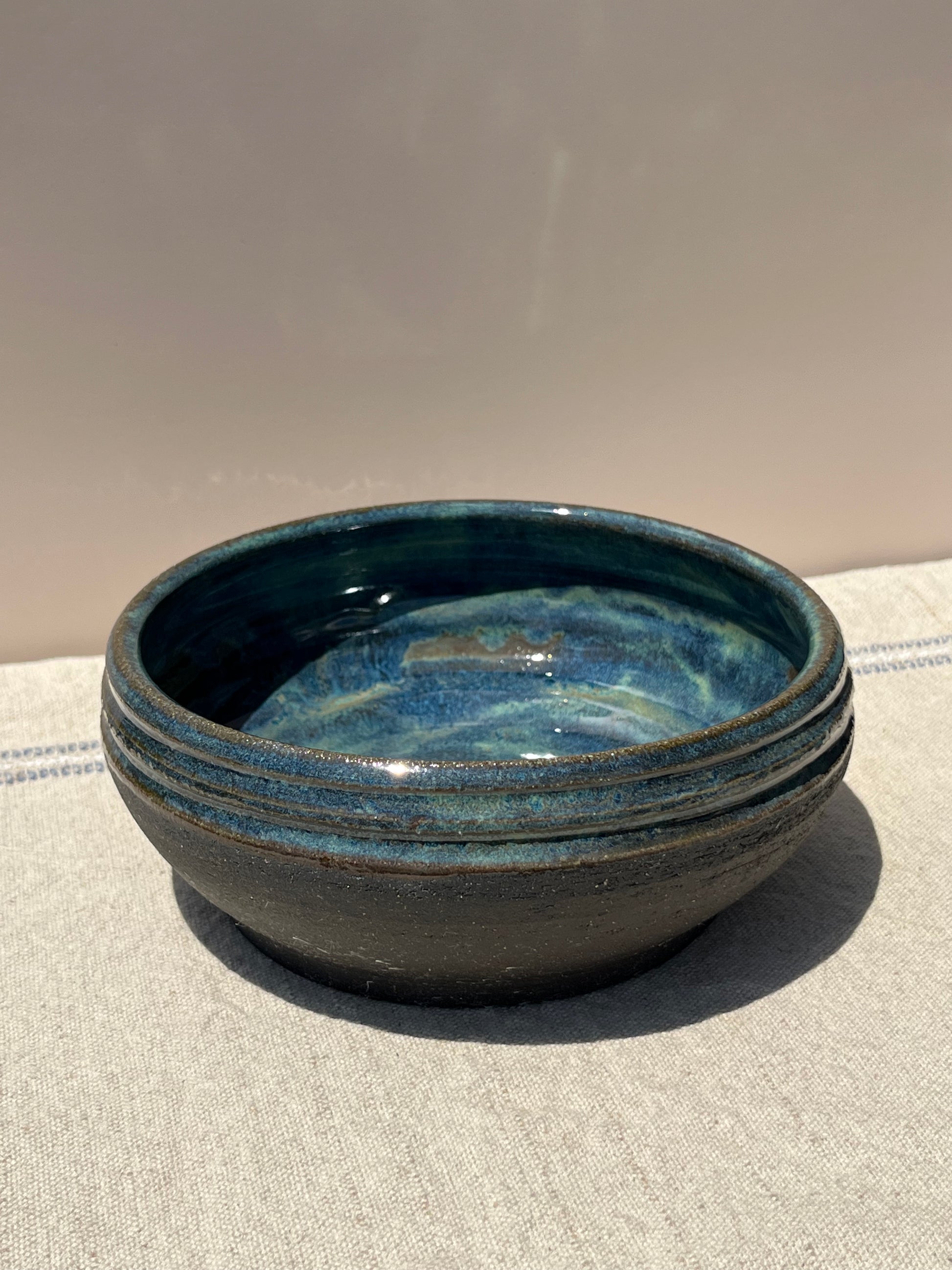 A quiet tribute to night and water, Moonwell is a hand-thrown bowl crafted from rich black clay. Its interior is glazed in a deep, luminous blue—like moonlight reflected in still water. The contrast between matte darkness and glossy depth gives this piece a sense of quiet mystery. Perfect for serving or simply resting in the light, Moonwell invites contemplation and calm.