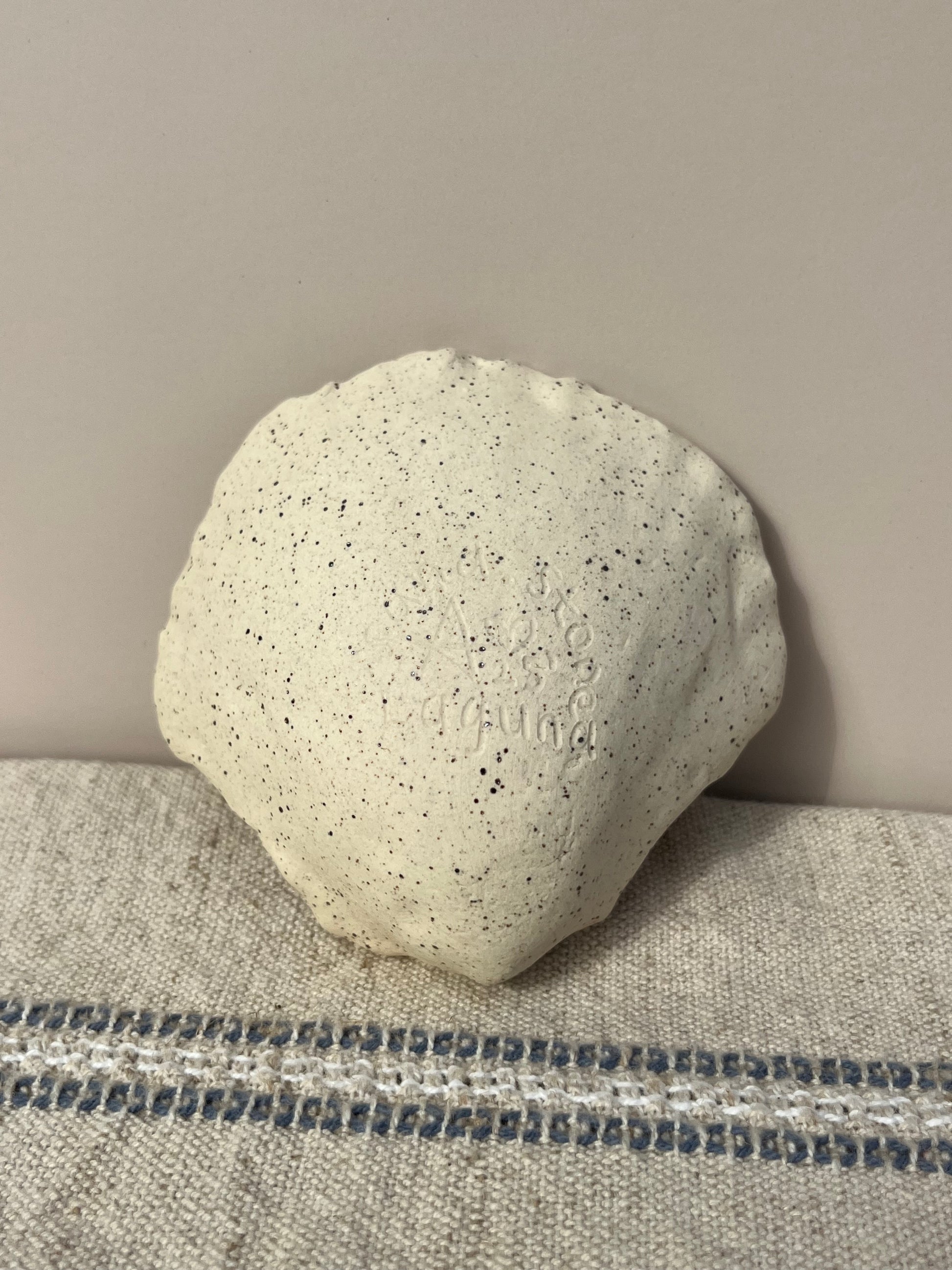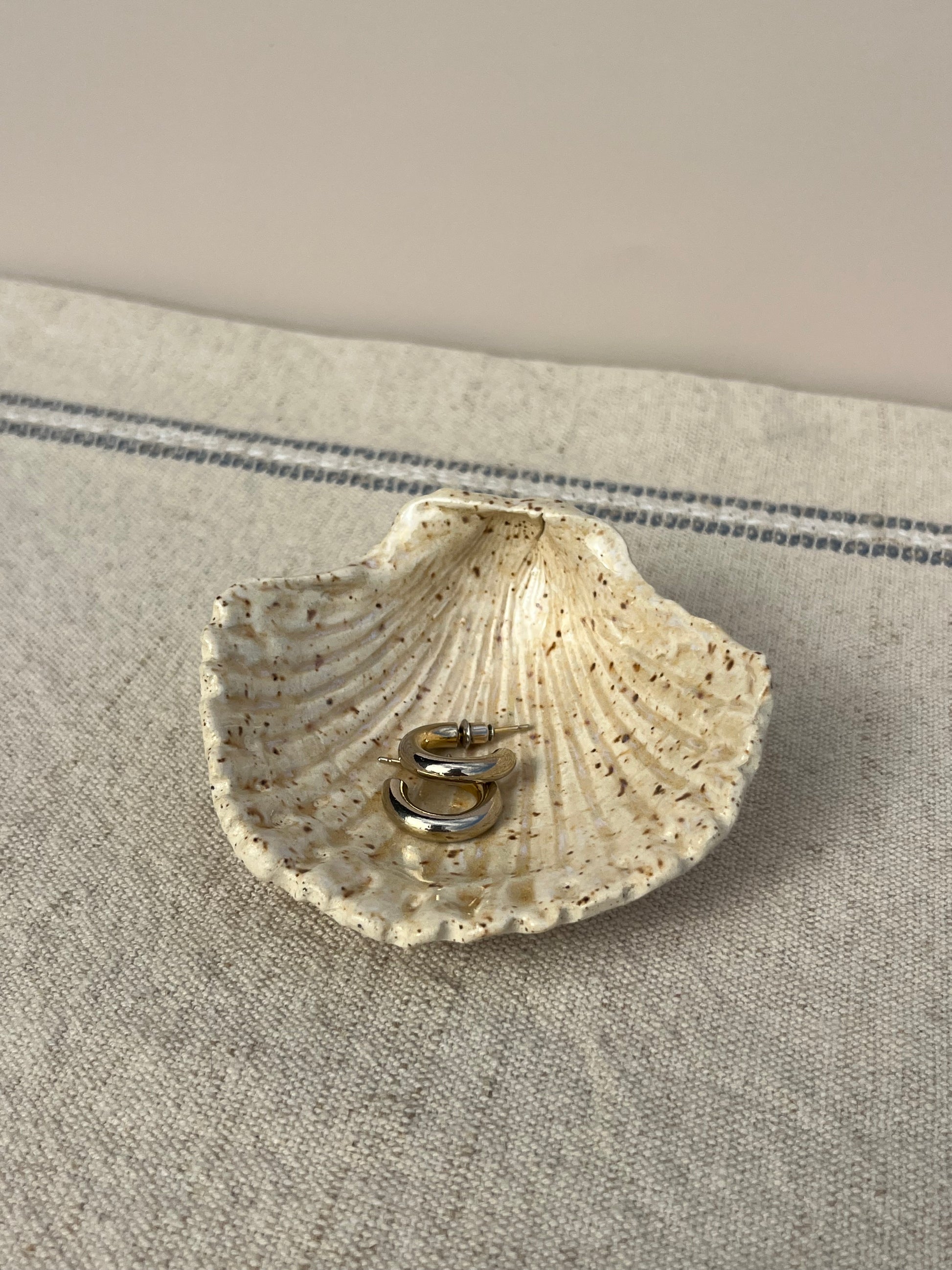 Inspired by sun-warmed sand and ocean treasures, this speckled shell dish brings a touch of coastal charm to any space. The warm, natural tones and textured glaze make it a beautiful resting place for jewelry or small keepsakes—each one uniquely freckled by the kiln.